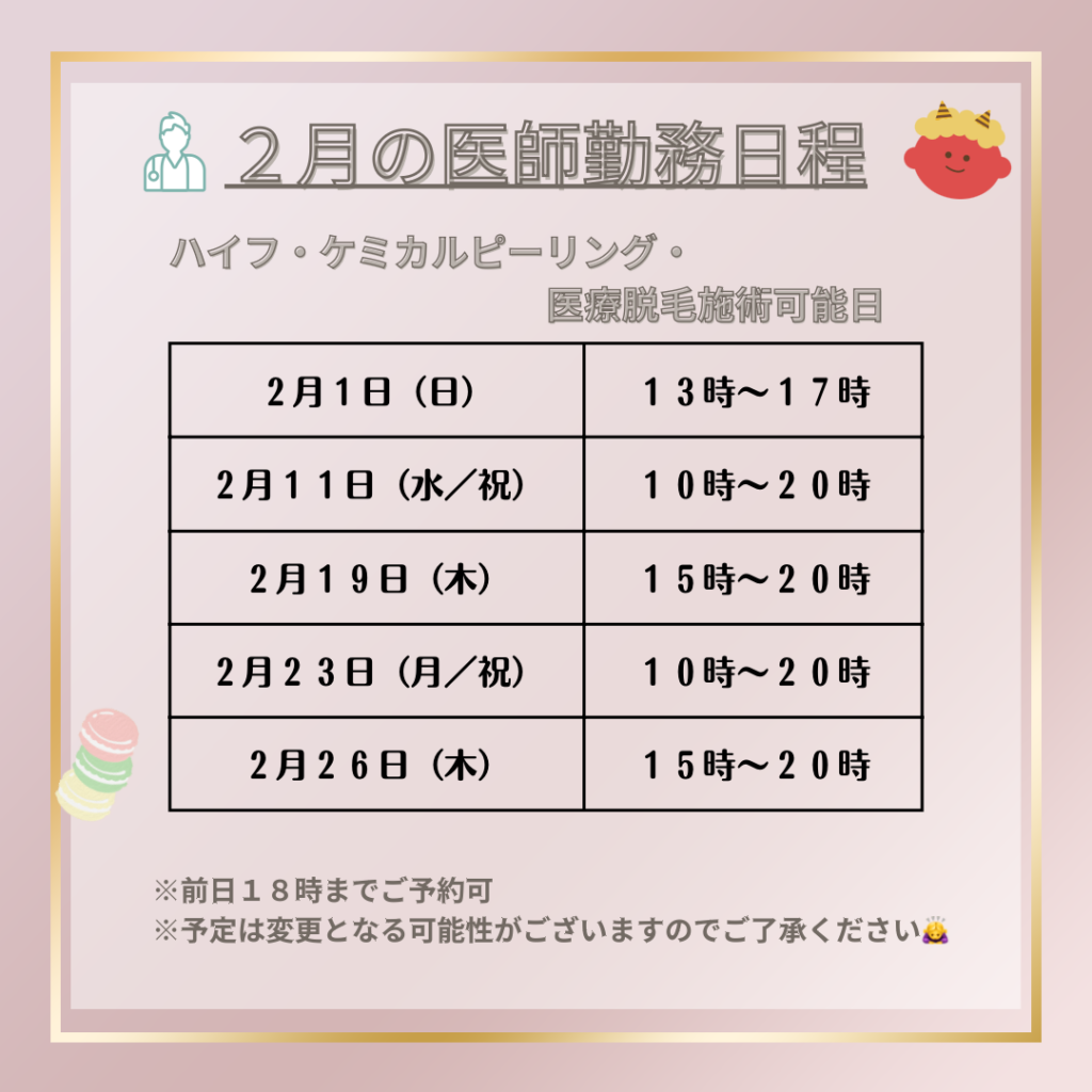 2月医療美容施術可能日🌙
